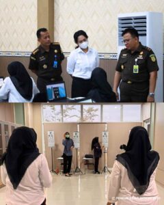 Selasa 23 September 2025, Kepala Biro Kepegawaian pada Jaksa Agung Muda Bidang Pembinaan Kejaksaan Agung, Sri Kuncoro, S.H., M.Si didampingi Asisten Pembinaan Kejaksaan Tinggi Banten Yuliarni Appy, S.H., M.H dan Asisten Pengawasan Kejaksaan Tinggi Banten Yuyun Wahyudi, S.H., M.H meninjau pelaksanaan seleksi kompetensi tambahan PPPK Kejaksaan RI Tahun 2025 di Wilayah Kejaksaan Tinggi Banten.