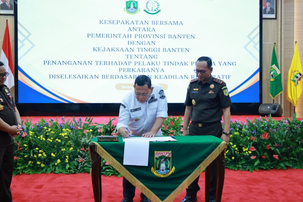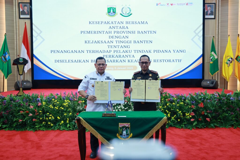 SERANG – Rabu 8 Januari 2025, bertempat di Pendopo Gubernur Banten telah diselenggarakan Penandatanganan Kesepakatan Bersama Antara Pemerintah Provinsi Banten Dengan Kejaksaan Tinggi Banten Tentang Penanganan Terhadap Pelaku Tindak Pidana yang perkaranya diselesaikan berdasarkan Keadilan Restoratif.
