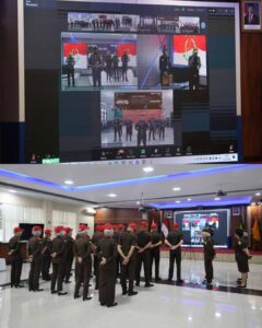 Rabu 1 Oktober 2025, bertempat di Aula Kejaksaan Tinggi Banten, Wakil Kepala Kejaksaan Tinggi Banten, Yuliana Sagala, S.H., M.H bersama Asisten Bidang Pembinaan Kejaksaan Tinggi Banten Yuliarni Appy, S.H., M.H dan peserta Pelatihan Dasar (Latsar) CPNS Golongan III pada Kejaksaan Tinggi Banten mengikuti secara daring Pembukaan Pelatihan Dasar Calon Pegawai Negeri Sipil Golongan III Tahun 2025.