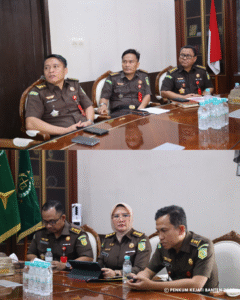 Senin 27 Oktober 2025, Kepala Kejaksaan Tinggi Banten Bernadeta Maria Erna Elastiyani, S.H., M.H. bersama Asisten Tindak Pidana Umum Jefri Penanging Makapedua, SH.MH, Kabag TU, Koordinator dan jajaran bidang Pidum Kejaksaan Tinggi Banten mengikuti ekspose permohonan penghentian penuntutan perkara berdasarkan keadilan Restorative Justice kepada Jaksa Agung Muda Tindak Pidana Umum secara Virtual.