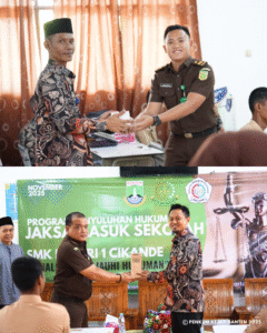 Jumat 28 November 2025, telah dilaksanakan kegiatan Penyuluhan Hukum Program Jaksa Masuk Sekolah (JMS) di SMK Negeri 1 Cikande oleh Kasi Penerangan Hukum pada Bidang Intelijen Kejaksaan Tinggi Banten, Rangga Adekresna, S.H., M.H., selaku narasumber beserta tim.