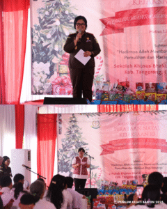 Pada hari Senin 1 Desember 2025, Kejaksaan Tinggi Banten melaksanakan kegiatan Bakti Sosial dalam rangka menyambut perayaan Natal Tahun 2025, dengan mengunjungi Sekolah Khusus Bhakti Luhur 02 Citra Raya, Kabupaten Tangerang.