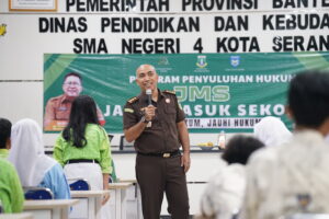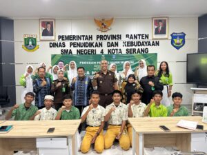 SERANG — Upaya membangun generasi sadar hukum terus digencarkan oleh Kejaksaan Tinggi Banten. Pada Kamis (16/4/2026), Kepala Seksi Penerangan Hukum Kejati Banten, Jonathan Suranta Martua, S.H., M.H., bersama tim turun langsung ke SMA Negeri 4 Kota Serang dalam program Jaksa Masuk Sekolah (JMS).