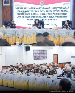 Selasa 18 Februari 2025, Kepala Kejaksaan Tinggi Banten Dr. Siswanto, SH.MH didampingi Wakil Kepala Kejaksaan Tinggi Banten Yuliana Sagala, SH.MH dan para Asisten menerima kunjungan Dr. Tanti Andriani Manurung, SH.MH Kepala Pusat Strategi Kebijakan Penegakan Hukum pada Jaksa Agung Muda Pembinaan Kejaksaan Agung beserta jajaran dalam kegiatan Survei Kepuasan Masyarakat (SKM) terhadap Pelayanan Terpadu Satu Pintu (PTSP) serta Sosialisasi Jurnal Ilmiah The Prosecutor Law Review dan Makalah di wilayah hukum Kejaksaan Tinggi Banten.