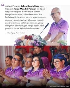Hadir dalam acara Jaksa Agung Muda Intelijen Prof Dr. Reda Manthovani beserta jajaran, Menteri Desa dan Pembangunan Daerah Tertinggal H. Yandri Susanto, S.Pt., M.Pd, Gubernur Provinsi Banten Andra Soni, Wakil Kepala Kejaksaan Tinggi Banten Yuliana Sagala, SH, MH, Kapolda Banten atau yang mewakili, Danrem 064 Banten, Ketua DPRD, para Kepala Kejaksaan Negeri Se-Wilayah Banten, Bupati Kabupaten Tangerang beserta FORKOPIMDA, Bupati Kabupaten Pandeglang beserta jajaran dinas terkait, Bupati Kabupaten Lebak beserta jajaran dinas terkait, Bupati Kabupaten Serang beserta jajaran dinas terkait, Direktur Utama PT. Telkom, Direktur Utama PT. PUPUK Indonesia, Rektor Universitas Telkom, Direktur Utama PT. PASKOMNAS Indonesia, Unsur pengelola BUMDES, para petani penggarap.