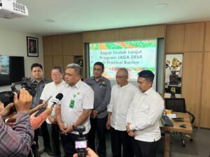 Rabu 16 juli 2024, Plt. Asisten Intelijen Kejaksaan Tinggi Banten Aditya Rakatama, S.H.,M.H bersama para Kasi Intelijen wilayah Banten melaksanakan Rapat Tindak Lanjut Program Jaga Desa di Provinsi Banten dengan tema “Pendahuluan atas tindak lanjut penandatanganan MoU perihal pemberdayaan lahan milik Desa dalam rangka kemandirian pangan Program Jaga Desa (Jaksa Mandiri Pangan)” bertempat di Aula Pasar Induk Tanah Tinggi Tangerang PT. Paskomnas Niaga Utama, Kec. Tangerang Kota Tangerang yang diikuti oleh Perwakilan Pemerintah Daerah sebanyak 4 Kabupaten di Provinsi Banten meliputi Kabupaten Tangerang, Kabupaten Lebak, Kabupaten Serang dan Kabupaten Pandeglang.