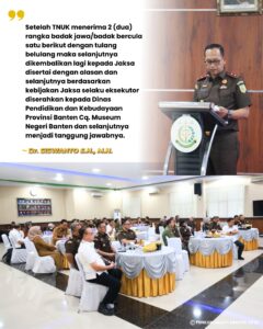 “Rangka B adak J awa dari TNUK dikembalikan ke Jaksa, lalu diserahkan ke Museum Negeri Banten untuk menjadi tanggung jawabnya .” u menangkap Kepala Kejaksaan Tinggi Banten.