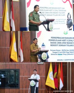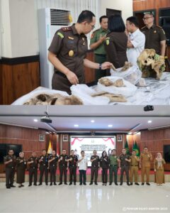 SERANG – Pada hari Senin 11 Agustus 2025, bertempat di Aula Kejaksaan Tinggi Banten telah dilaksanakan kegiatan Pengembalian Barang Bukti dan Pengelolaan Aset 2 (dua) Tengkorak Badak Jawa atau Badak Cula Satu berikut dengan Tulang Belulang berdasarkan Putusan Nomor :39 / Pid.Sus -LH/2024/PN Pdl pada tanggal 5 Juni 2024 yang Memperoleh Gaya Hukum Tetap ( Inkracht Van Gew ijsde ) yang diserahkan kepada Balai Taman Nasional Ujung Kulon.