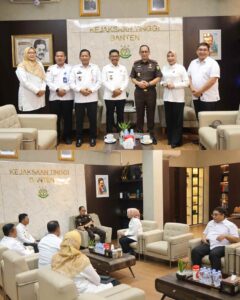 Rabu 20 Agustus 2025, Kepala Kejaksaan Tinggi Banten Dr. Siswanto S.H., M.H didampingi Asisten Perdata dan Tata Usaha Kejaksaan Tinggi Banten Dyah Ambarwati, S.H., M.H menerima kunjungan dan silaturahmi Wali Kota Tangerang Drs. H. Sachrudin beserta jajaran.