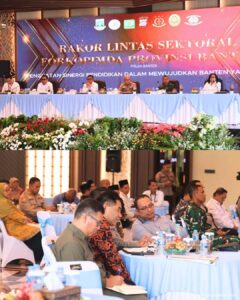 Rapat ini bertujuan memperkuat sinergi antarinstansi dalam rangka menciptakan situasi yang aman, kondusif, dan tertib di wilayah Provinsi Banten melalui kolaborasi di bidang pendidikan dan pembinaan masyarakat.