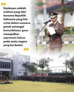 “Hal tersebut menegaskan bahwa Kejaksaan adalah institusi yang lahir bersama Republik Indonesia yang kita cintai dalam suasana penuh semangat kemerdekaan, guna mewujudkan supremasi hukum pada suatu negara yang berdaulat”